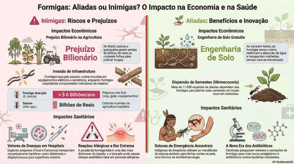 Para a maioria das pessoas, a relação com as formigas é, na melhor das hipóteses, ambivalente. Admiramos sua resiliência e ética de trabalho quando vistas em documentários, mas a nossa paciência se esgota rapidamente quando uma trilha delas invade a cozinha. Essa dualidade de percepção reflete a realidade do impacto das formigas no mundo humano. Elas não são meramente espectadoras passivas da nossa civilização; são agentes ativos que exercem uma influência profunda e mensurável em nossas economias e em nossa saúde. Longe de serem apenas «insetos», as formigas atuam como pragas devastadoras e, ao mesmo tempo, como aliadas indispensáveis, engenheiras de ecossistemas e até mesmo como fonte de inovação médica. Compreender essa complexa interação é fundamental para o mirmecologista amador, pois enriquece a apreciação pela criatura que ele observa, contextualizando seu papel no grande esquema das coisas.