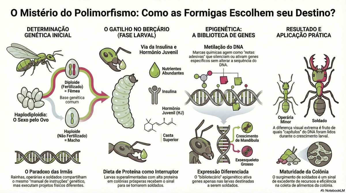 O fenômeno de ter múltiplas formas físicas dentro da mesma espécie é chamado de polimorfismo (do grego, poly = muitas, morphē = forma). Entender suas bases não é apenas uma curiosidade científica; é compreender o motor da eficiência e da adaptabilidade que tornou as formigas um dos grupos de animais mais bem-sucedidos da Terra.